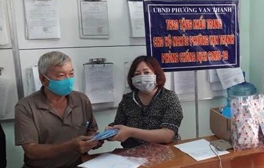 Sáng ngày 31/3, Ủy ban MTTQVN phường Vạn Thạnh, thành phố Nha Trang đã phối hợp UBND phường phát tặng miễn phí khẩu trang y tế cho 61 nhân khẩu thuộc 20 hộ nghèo tại 11 tổ dân phố.