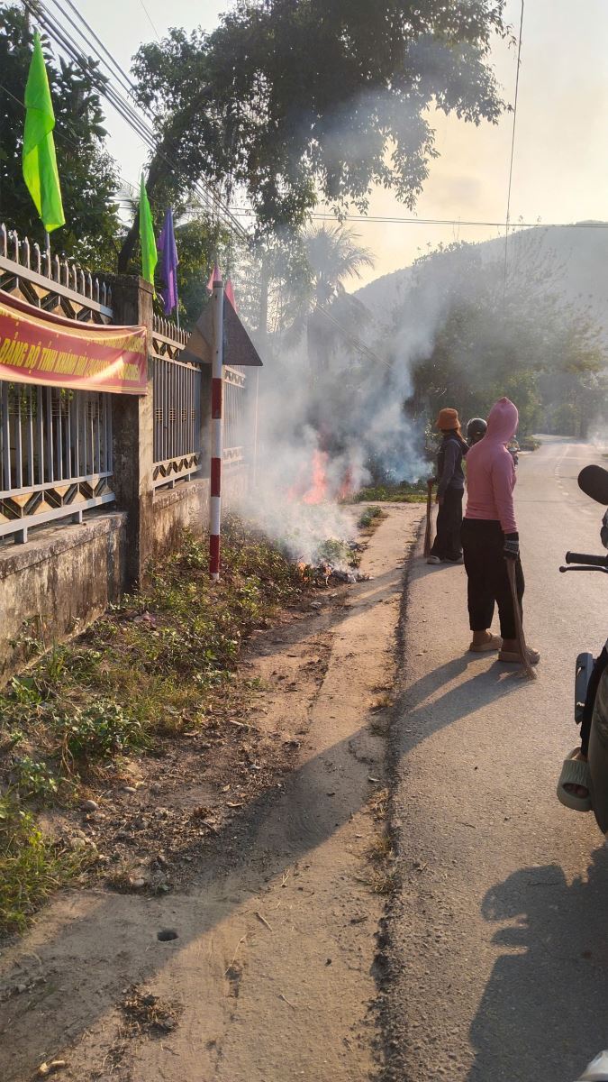 dọn dẹp vệ sinh tại đường làng của thôn Suối Cá