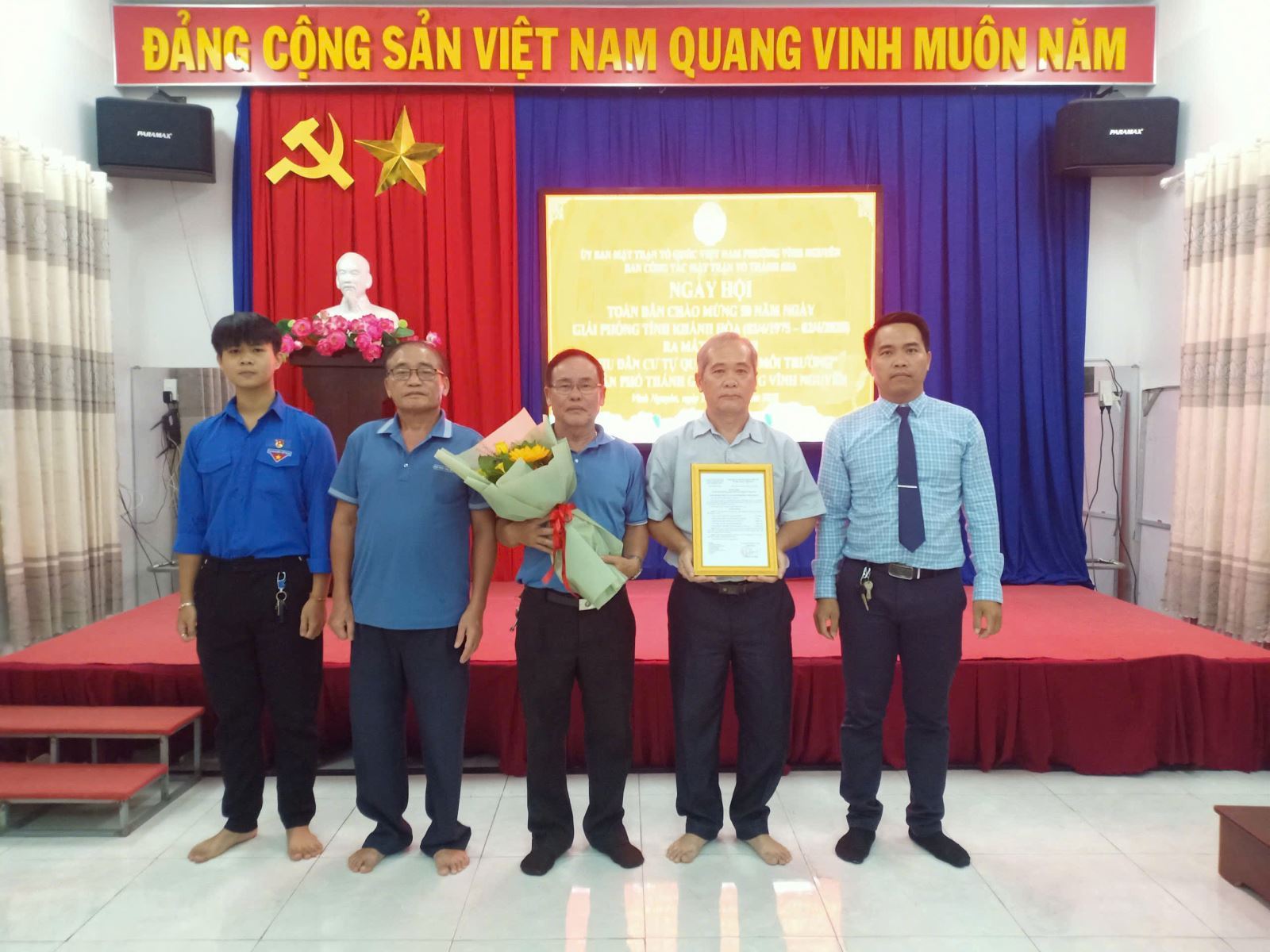 Tổ tự quản bảo vệ môi trường Tổ Thánh Gia ra mắt và nhận hoa chúc mừng từ lãnh đạo Ủy ban MTTQ Việt Nam phường.