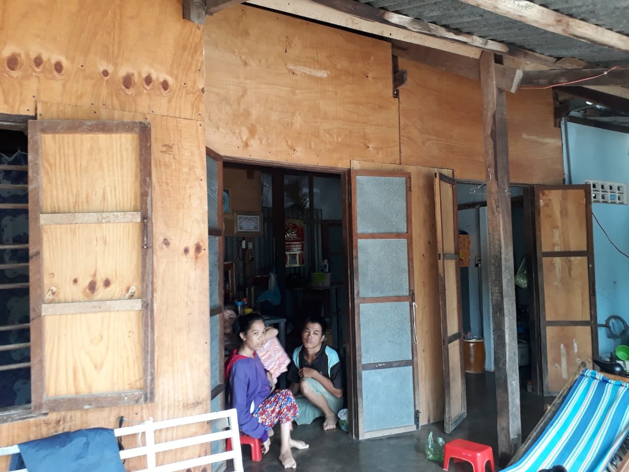 Ngôi nhà cũ xuống cấp của vợ chồng anh Nguyễn Văn Huyến và chị Trần Thị Bích Ly