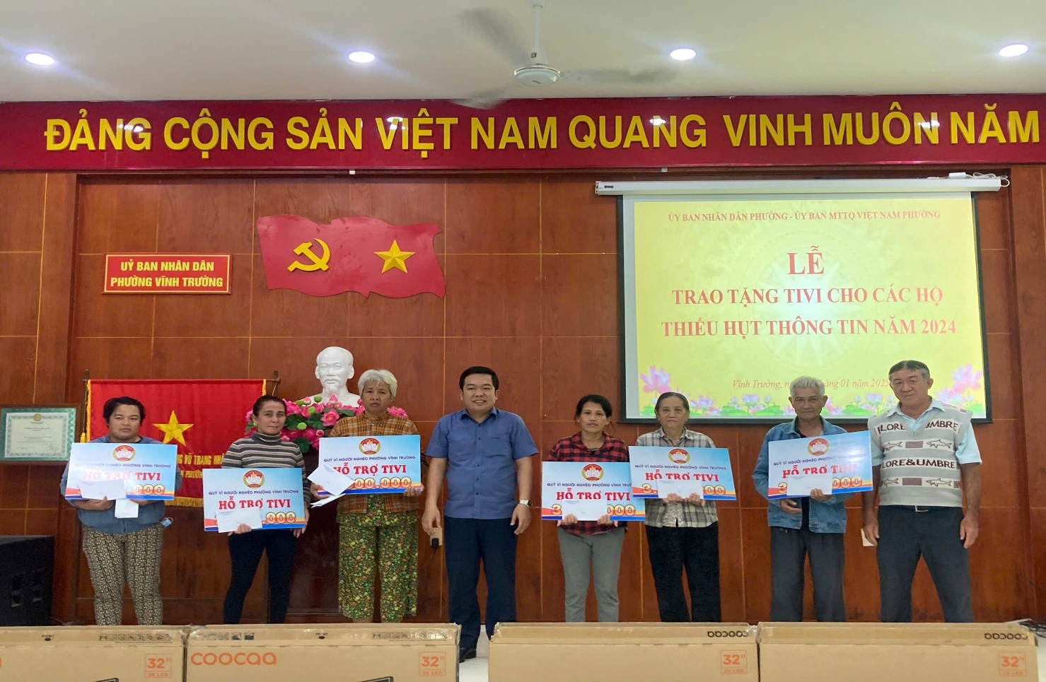 Ngày 10/01/2025, UBND phường đã phối hợp với UBMTTQ Việt Nam phường Vĩnh Trường tổ chức Chương trình trao tặng tivi trích từ Quỹ “Vì người nghèo” của phường Vĩnh Trường cho 6 hộ nghèo thuộc đối tượng được hỗ trợ phương tiện thiếu hụt tiếp cận thông tin tại 3 tổ dân phố trên địa bàn phường Vĩnh Trường.
