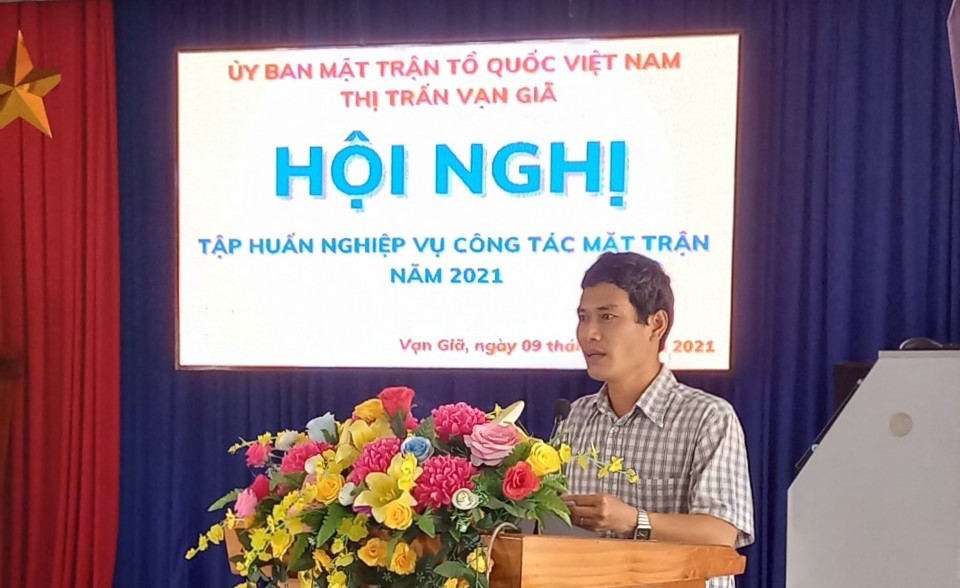Nhằm nâng cao kỹ năng, nghiệp vụ trong triển khai thực hiện công tác Mặt trận ở cơ sở, sáng ngày 09/11/2021, Ban thường trực Ủy ban MTTQVN thị trấn Vạn Giã tổ chức Hội nghị tập huấn nghiệp vụ công tác Mặt trận năm 2021. Đến dự có đ/c Nguyễn Công Bằng - Huyện ủy viên, Bí thư Đảng ủy, Chủ tịch HĐND thị trấn.