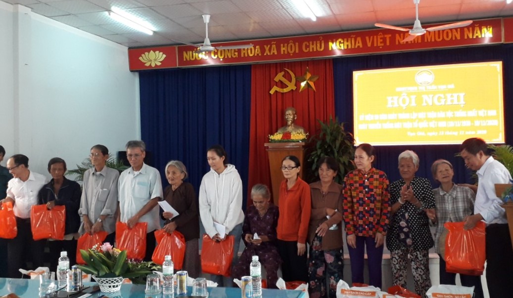 Nhân dịp kỷ niệm, MTTQ xã đã trao 34 xuất quà cho hộ nghèo với tổng số tiền 17 triệu đồng. Khen thưởng 2 tập thể và 5 cá nhân đã có thành tích xuất sắc trong đợt thi đua Chào mừng kỷ niệm 90 năm Ngày thành lập Mặt trận Dân tộc Thống nhất Việt Nam - Ngày truyền thống Mặt trận Tổ quốc Việt Nam.