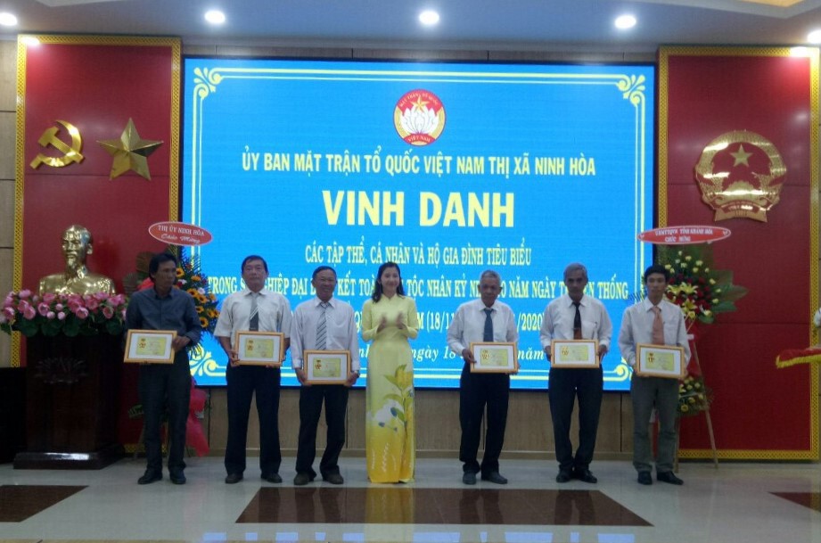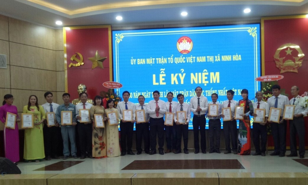 Cũng tại buổi lễ, đã trao Kỷ niệm chương "Vì sự nghiệp Đại đoàn kết dân tộc" của Ủy ban Trung ương MTTQ Việt Nam cho 22 cá nhân; Chủ tịch UBND thị xã Ninh Hoà đã tặng Giấy khen cho 6 tập thể và 12 cá nhân có thành tích xuất sắc trong công tác Mặt trận và Ban Thường trực Ủy ban MTTQ Việt Nam thị xã vinh danh 33 tập thể, cá nhân và hộ gia đình tiêu biểu trong sự nghiệp Đại đoàn kết toàn dân tộc.