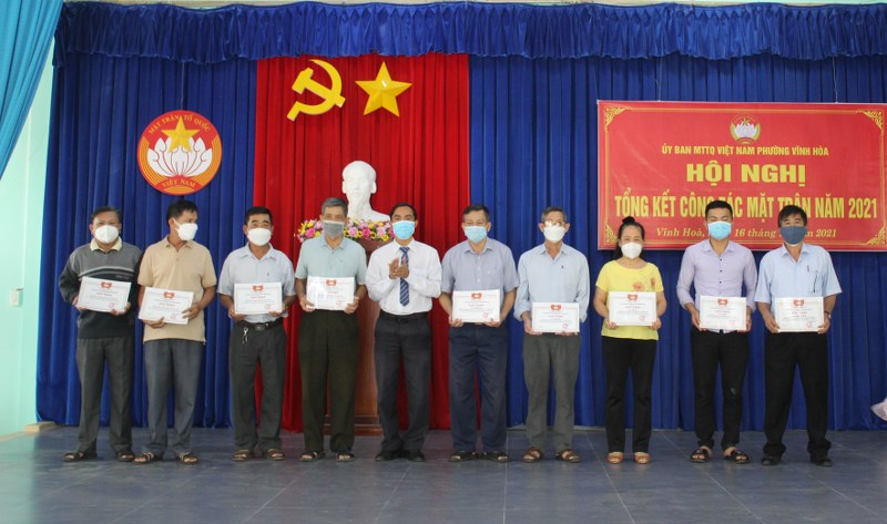 Sáng ngày 16/12/2021, tại hội trường Trung tâm văn hóa phường (số 03 Quảng Đức), Ủy ban MTTQ Việt Nam phường Vĩnh Hòa tổ chức hội nghị Tổng kết công tác mặt trận năm 2021. Tham dự Hội nghị có ông Trần Văn Đông – Bí thư Đảng ủy- Chủ tịch HĐND phường, các vị trong Thường trực HĐND, UBND, Bí thư Chi bộ của 17 Tổ dân phố cùng 40 vị Ủy viên UBMTTQ phường Vĩnh Hòa nhiệm kỳ 1019 – 2024 có mặt.
