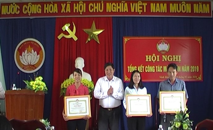 Nhân dịp này, Uỷ ban Mặt trận tỉnh Khánh Hòa tặng Bằng khen cho 3 tập thể, 2 cá nhân; Uỷ ban Mặt trận thị xã Ninh Hòa đã tặng Giấy khen cho 18 tập thể và 19 cá nhân có thành tích xuất sắc trong công tác Mặt trận năm 2019.
