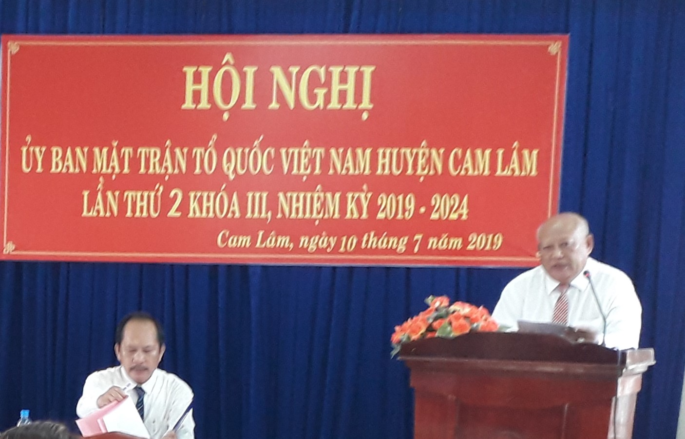 Sáng ngày 10/7/2019, tại Hội trường Khối Mặt trận – Đoàn thể huyện Cam Lâm, Ủy ban MTTQ Việt Nam huyện đã tổ chức hội nghị Ủy ban MTTQ Việt Nam huyện lần thứ 2, khóa III, nhiệm kỳ 2019-2024 để sơ kết công tác Mặt trận 6 tháng đầu năm 2019, đề ra chương trình công tác trọng tâm 6 tháng cuối năm 2019.