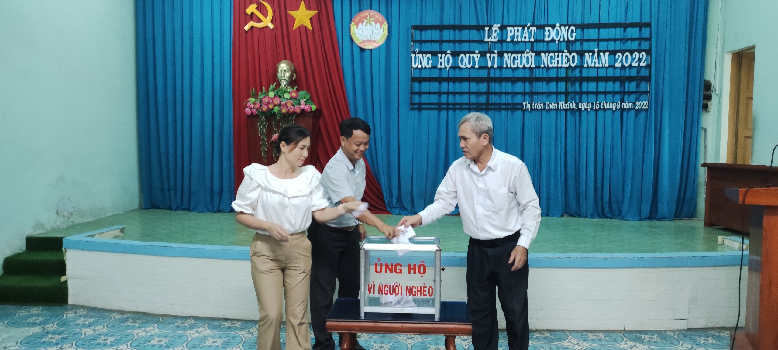 Chiều 15/9/2022, tại Hội trường UBND thị trấn Diên Khánh, Ủy ban MTTQ Việt Nam – Ban vận động Quỹ “Vì người nghèo” thị trấn đã tổ chức Lễ phát động ủng hộ, xây dựng quỹ “Vì người nghèo” năm 2022. Tham dự có các đồng chí lãnh đạo Đảng ủy, HĐND, UBND, UBMT, cán bộ, công chức các ban, ngành, đoàn thể; các đơn vị, doanh nghiệp, cơ sở tôn giáo và các nhà hảo tâm trong và ngoài thị trấn Diên Khánh.