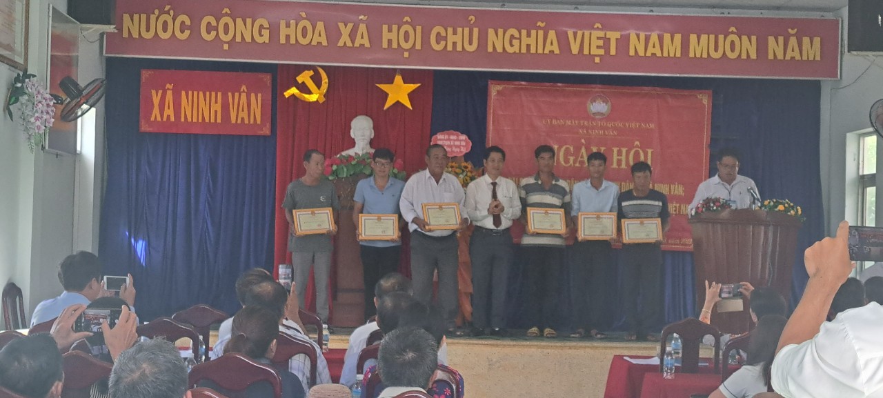 Tại Ngày hội, thay mặt Thị ủy-HĐND-UBND-UBMTTQVN thị xã Ninh Hòa ông Phan Xuân Hòa đã trao 01 xuất quà cho Ủy ban MTTQ Việt Nam xã; thay mặt cho Đảng ủy - HĐND - UBND - UBMTTQ Việt Nam xã Ninh Vân, đồng chí Trà Thị Bông Sen, trao 39 xuất quà cho người dân tại 02 khu dân cư trên địa bàn là hộ nghèo, trị giá 7.800.000đ từ nguồn quỹ vì người nghèo.