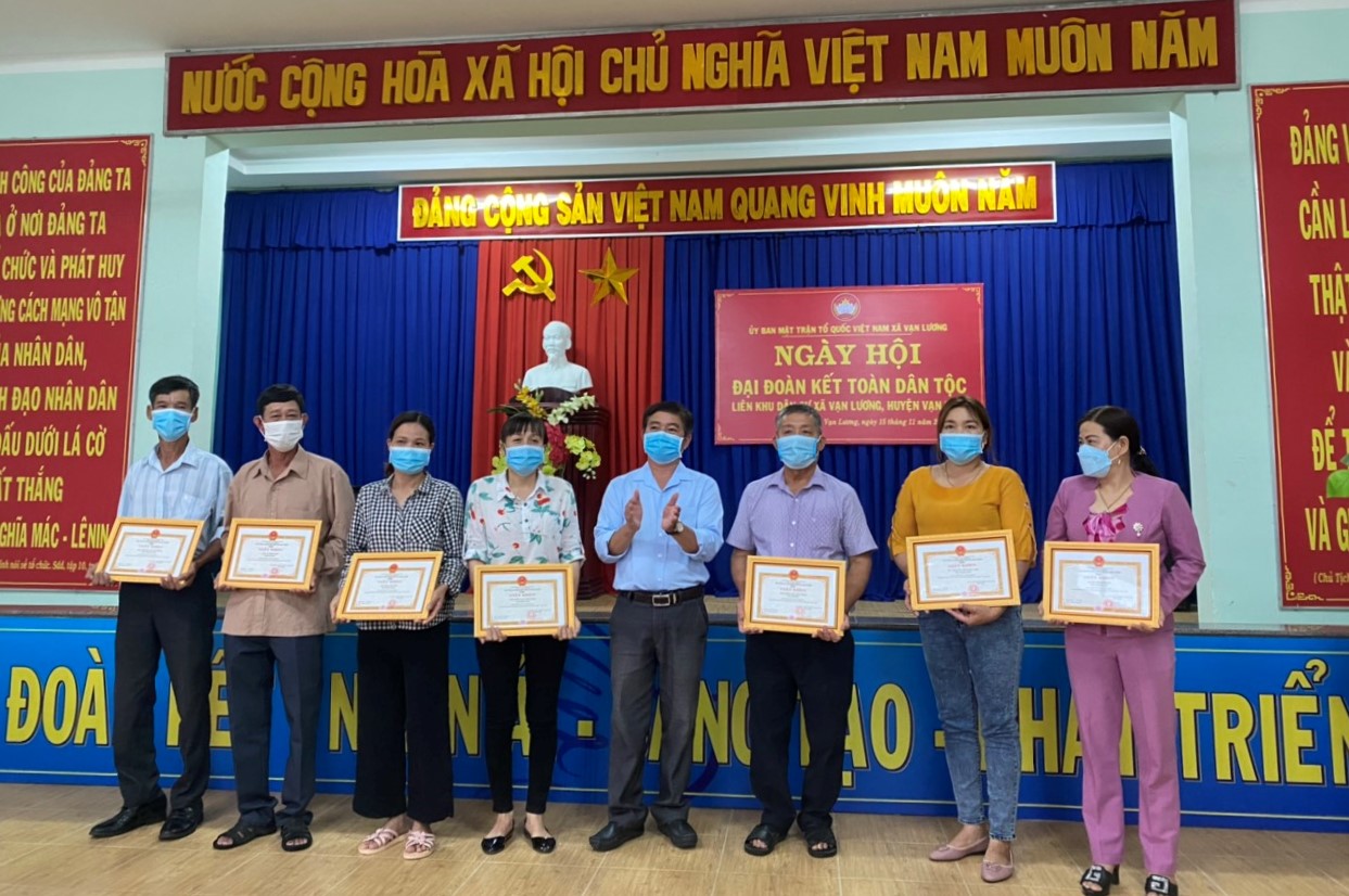 Về dự có ông Hồ Văn Ân - Phó Bí thư Đảng uỷ; ông Trần Thành Hải - phó bí thư Đảng uỷ, Chủ tịch UBND xã Vạn Lương, cùng các đồng chí là HĐND, UBND và các Ban ngành Đoàn thể xã, trưởng ban công tác mặt trận thôn và các cá nhân tiêu biểu trong xây dựng phong trào.