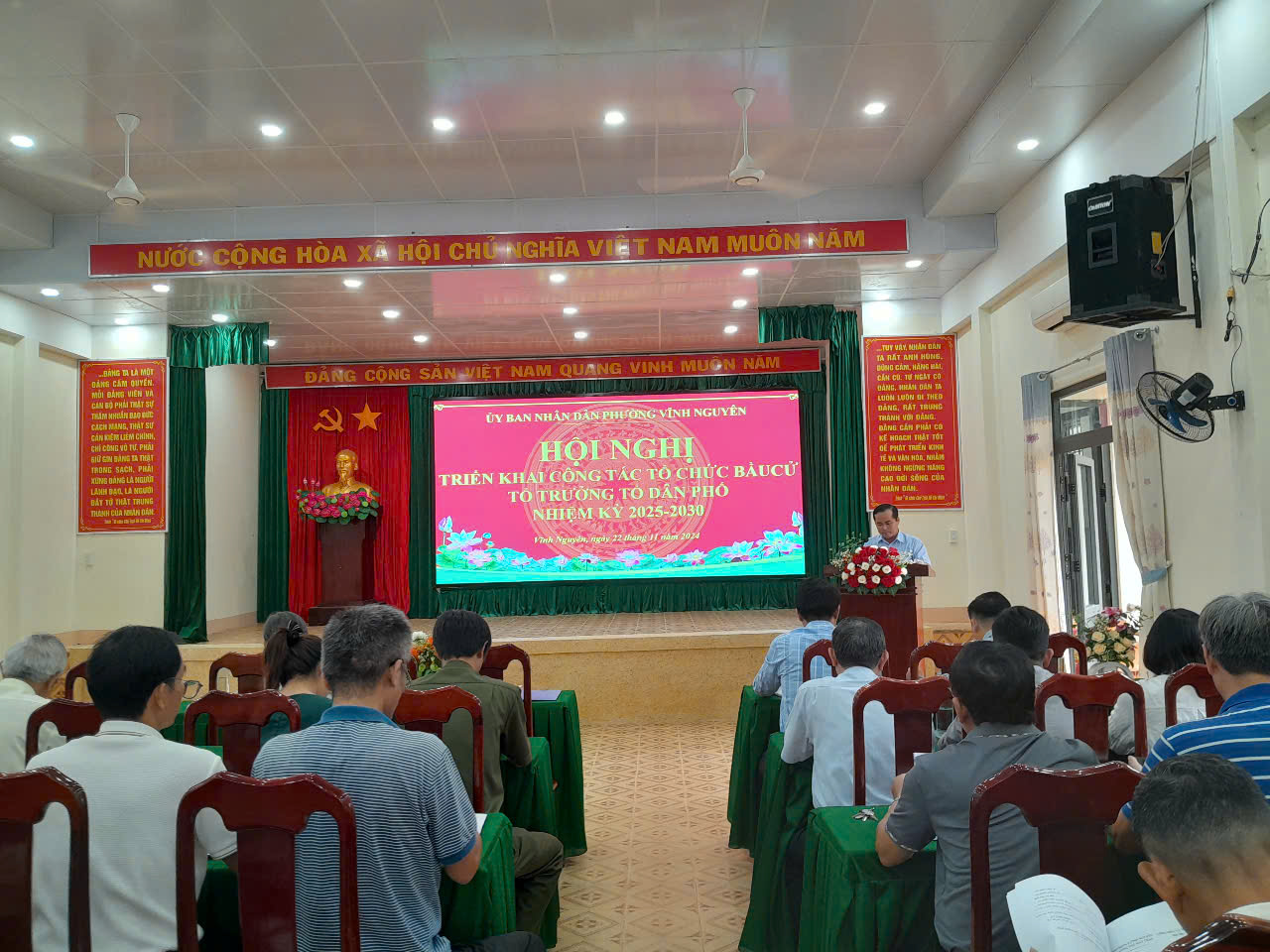 Sáng ngày 22/11/2024, UBND phường Vĩnh Nguyên phối hợp với Ủy ban MTTQ Việt Nam phường tổ chức Hội nghị triển khai công tác tổ chức bầu cử Tổ trưởng tổ dân phố, nhiệm kỳ 2025 - 2030. Dự và chủ trì hội nghị có Đồng chí Nguyễn Đình – Thành ủy viên, Bí thư Đảng ủy phường, cùng các đồng chí lãnh đạo HĐND, UBND, Ủy ban MTTQ Việt Nam phường; Các đồng chí trong Ban chỉ đạo triển khai công tác bầu cử, các đồng chí Bí thư chi bộ, Tổ trưởng dân phố, Trưởng ban công tác Mặt trận của 11 Tổ dân phố về dự đông đủ.