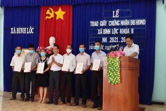 Ngày 07/6/2021, Ủy ban bầu cử xã Bình Lộc đã tiến hành tổng kết và trao giấy chứng nhận đại biểu HĐND xã khóa II, nhiệm kỳ 2021 – 2026. Đến dự có các đồng chí lãnh đạo Đảng ủy, UBND, Ủy ban MTTQVN và 25 vị đại biểu HĐND xã.