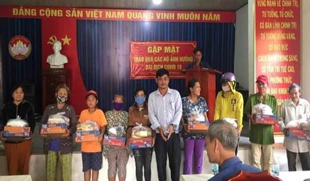Ông Trần Công Hòa – Chủ tịch Ủy ban MTTQ Việt Nam xã trao quà hỗ trợ cho người dân