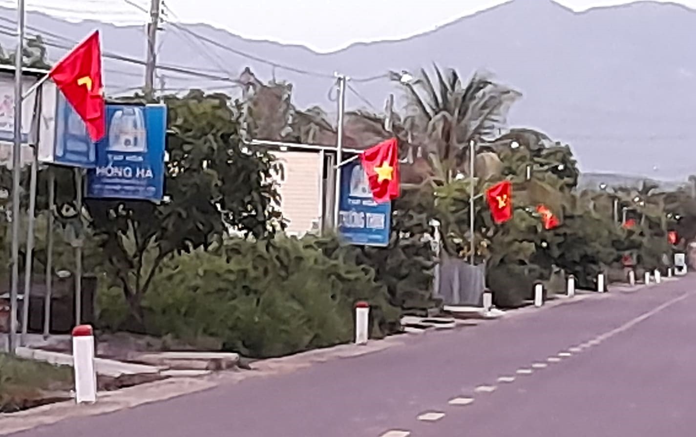 Cảnh quang mô hình “Đường Cờ Đảng, cờ Tổ Quốc” thôn Đồng Bé chào mừng Đại hội Đảng bộ Huyện Diên Khánh lần thứ XVII, nhiệm kỳ 2020-2025”