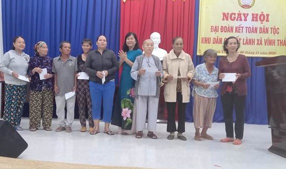 Tối 06/11, Ban Công tác Mặt trận Khu dân cư Đất Lành, xã Vĩnh Thái, thành phố Nha Trang đã tổ chức ngày hội Đại đoàn kết toàn dân tộc năm 2020. Tham dự Ngày hội Đại đoàn kết có bà Nguyễn Thị Khánh Hòa – UVBTV, Trưởng ban Dân vận Thành ủy – Chủ tịch Ủy ban MTTQ Việt Nam thành phố Nha Trang; bà Lê Thị Ngọc Tyền – Phó ban dân vận Thành ủy Nha Trang; bà Nguyễn Thị Xuân Lan – PBT Đảng ủy xã; bà Đinh Thị Cam – UVBTV Đảng ủy, Chủ tịch Ủy ban MTTQ Việt Nam xã; bà Nguyễn Thị Kim Chi – Phó Chủ tịch HĐND xã; ông Nguyễn Trường Nhật Nguyên – Phó Chủ tịch UBND xã. Đây là khu dân cư tiêu biểu của xã Vĩnh Thái.