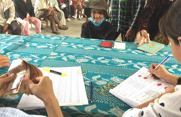 Nhân dân ký nhận tiền hỗ trợ tiền hỗ trợ dịch Covid- 19.