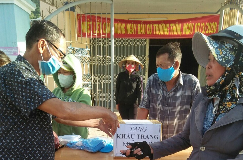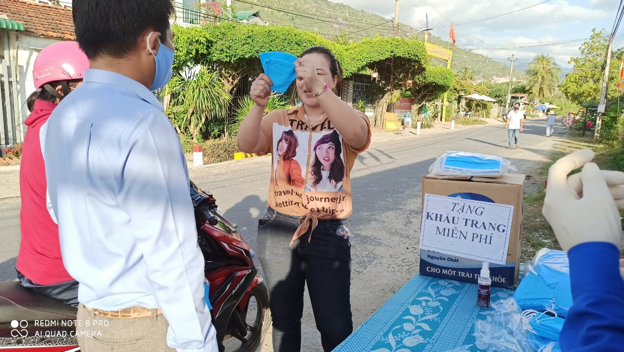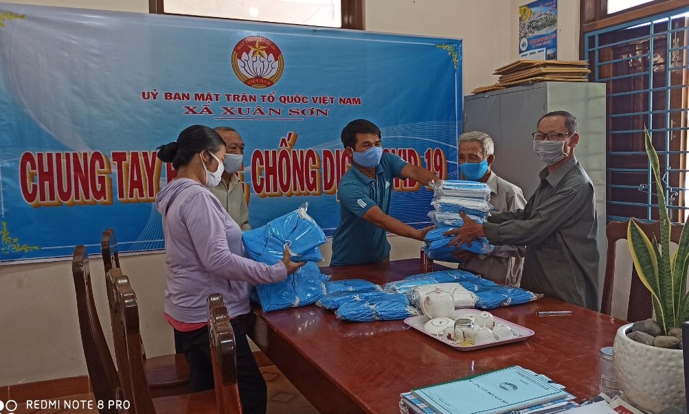 Ngày 04/4 Mặt trận xã Xuân Sơn, huyện Vạn Ninh đã tiến hành phát miễn phí hơn 2.000 khẩu trang vải kháng khuẩn, 1.000 chai dung dịch rửa tay khô sát khuẩn cho người dân trên địa bàn xã, từ sự huy động đóng góp của cán bộ, công chức xã để mua dung dịch rửa tay và vải kháng khuẩn, vận động các tiệm may may khẩu trang tại gia đình.