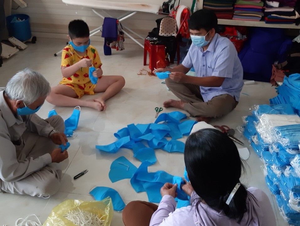 Một số hình ảnh may khẩu trang và phát miễn phí cho người dân: