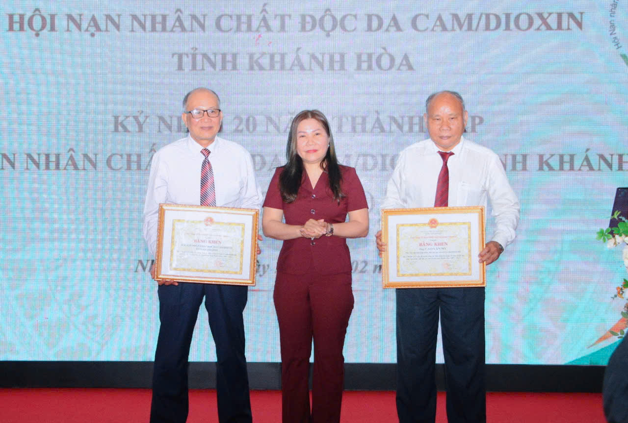 Nhân dịp này, UBND tỉnh Khánh Hoà tặng Bằng khen 1 tập thể, 1 cá nhân; Hội NNCĐDC/DIOXIN Việt Nam tặng Kỷ niệm chương cho 4 cá nhân và tặng Bằng khen cho 3 tập thể, 5 cá nhân; Hội NNCĐDC/DIOXIN tỉnh tặng Giấy khen 6 tập thể, 25 cá nhân có thành tích xuất sắc trong công tác Hội giai đoạn 2005 - 2025. Cũng tại đây, Tỉnh hội đã trao bằng Tri ân cho 11 doanh nghiệp tiêu biểu xuất sắc, đã đồng hành cùng Hội chung lo xoa dịu nỗi đau da cam trong 20 năm qua./.
