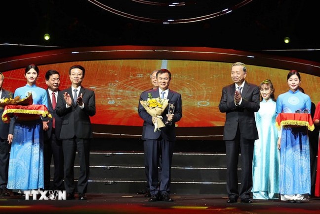 | Tổng Bí thư Tô Lâm và các doanh nghiệp đoạt Giải sản phẩm công nghệ số "Make in Viet Nam 2024". (Ảnh: Thống Nhất/TTXVN) |