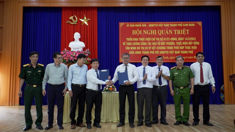 Tại Hội nghị, Lãnh đạo UBND và Ủy ban MTTQ Việt Nam thành phố đã tổ chức ký kết chương trình nhằm triển khai thực hiện có hiệu quả công tác bảo vệ môi trường, thực hiện nếp sống văn minh đô thị trên địa bàn thành phố Cam Ranh.