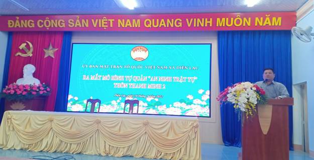 Để tăng cường công tác giữ gìn an ninh trật tự, phòng chống tội phạm, xây dựng phong trào toàn dân baỏ vệ an ninh Tổ quốc, vừa qua Ủy ban Mặt trận Tổ quốc Việt Nam xã Diên Lạc (huyện Diên Khánh) triển khai cho Ban công tác Mặt trận thôn Thanh Minh 2 tổ chức ra mắt mô hình tự quản “An ninh trật tự” tại khu dân cư 16; 17A; 17B và 18 thuộc thôn Thanh Minh 2. Tham dự Hội nghị ra mắt có ông Phan Văn Hưng – Phó chủ tịch Ủy ban MTTQVN huyện Diên Khánh; Thường trực Đảng ủy; HĐND; UBND xã Diên Lạc; Thành viên Mặt trận và 70 hộ gia đình ở khu dân cư tham dự.