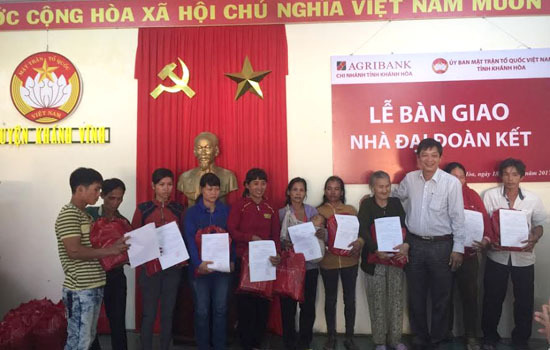 Sáng ngày 18/1, Ủy ban MTTQ Việt Nam tỉnh Khánh Hoà phối hợp với Ngân hàng Nông nghiệp (Argibank) đã tổ chức bàn giao 100 ngôi nhà Đại đoàn kết cho 100 hộ dân tại 2 huyện miền núi của tỉnh Khánh Hòa là Khánh Vĩnh, Khánh Sơn.