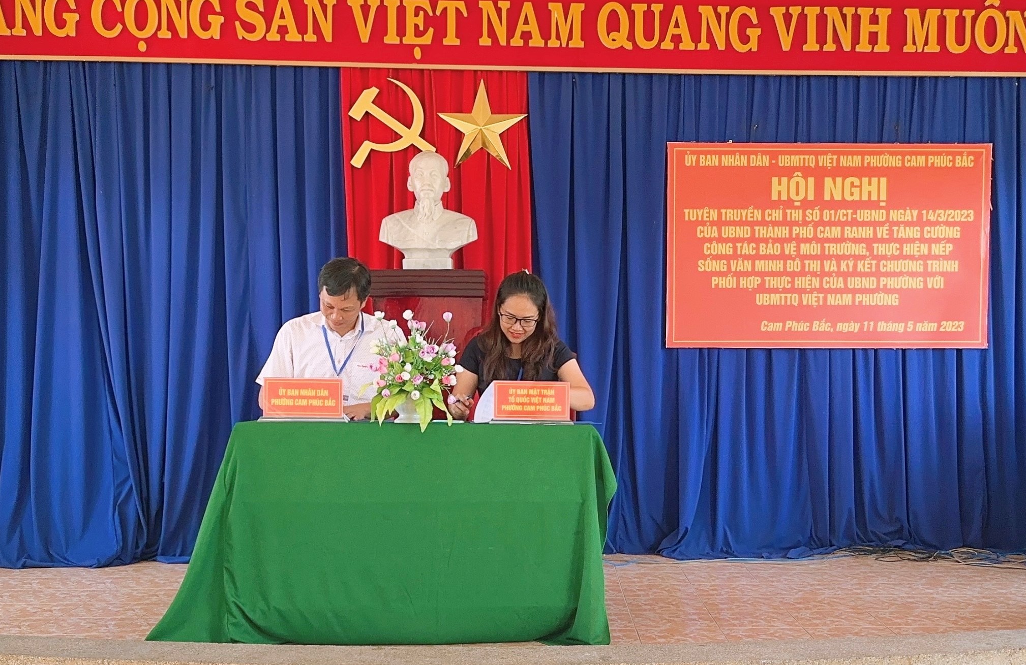Chiều ngày 11/5/2023, Ban Thường trực Ủy ban MTTQ Việt Nam phường phối hợp UBND phường Cam Phúc Bắc (TP. Cam Ranh) tổ chức Hội nghị tuyên truyền Chỉ thị số 01/CT-UBND ngày 14/3/2023 của UBND thành phố về tăng cường công tác bảo vệ môi trường, thực hiện nếp sống văn minh đô thị.