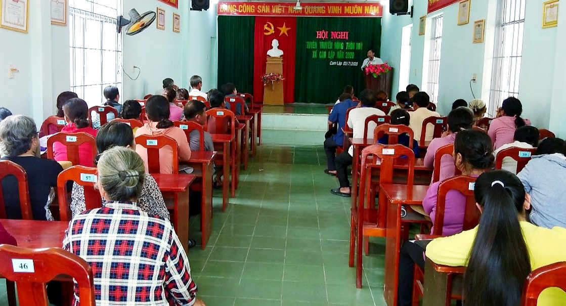 Nhằm tăng cường nhận thức cho Nhân dân trên địa bàn xã về chủ trương xây dựng nông thôn mới (NTM) tại địa phương. Mới đây, Ban Thường trực Ủy ban MTTQ Việt Nam xã Cam Lập, đã phối hợp với UBND xã tổ chức hội nghị tuyên truyền về xây dựng NTM. Đến dự có ông Nguyễn Văn Kết - Phó Bí thư Đảng ủy, Chủ tịch UBND xã Cam Lập và cũng là báo cáo viên, cùng gần 70 đại diện hộ gia đình của hai thôn trong xã tham dự.
