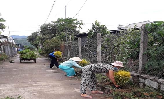 Ra quân trồng hoa trên các tuyến đường tại thôn Trung, xã Diên Lâm