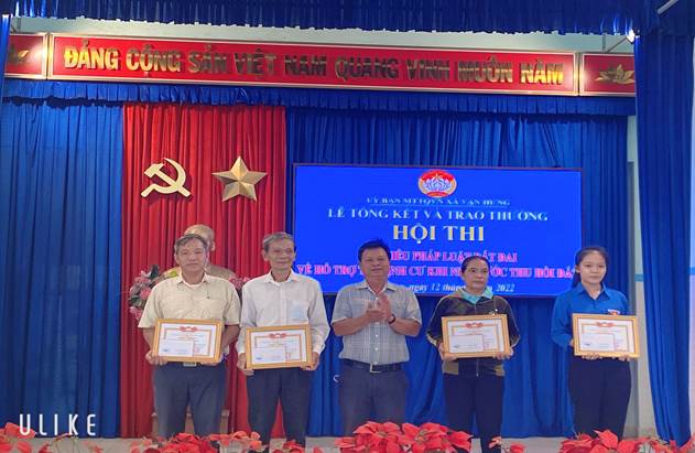 Thực hiện nhiệm vụ tuyên truyền, vận động Nhân dân bàn giao Mặt bằng để chuẩn bị thi công Cao tốc Bắc Nam Vân Phong – Nha Trang và Khu công nghiệp Dốc Đá trắng; sau một thời gian chuẩn bị chu đáo và triển khai trong đội ngũ cán bộ làm công tác Mặt trận và các tổ chức thành viên, sáng ngày 12/8/2022, Mặt trận TQVN xã Vạn Hưng, huyện Vạn Ninh đã tiến hành tổng kết Hội thi tìm hiểu pháp luật đất đai về hỗ trợ tái định cư khi Nhà nước thu hồi đất năm 2022.