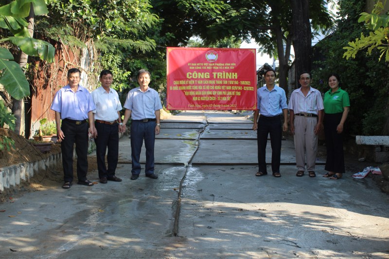 Lập thành tích chào mừng 77 năm Cách mạng tháng 8 thành công và Quốc khánh 2/9, sau một thời gian vận động, sáng 2/9/2022, Cấp ủy, Ban điều hành, Ban công tác Mặt trận cùng nhân dân hẻm 63 Nguyễn Chích, Tổ 2 Hòa Tây, phường Vĩnh Hòa, thành phố Nha Trang, tỉnh Khánh Hòa đã làm lễ khánh thành, bàn giao công trình chào mừng các ngày lễ lớn do UBMTTQ Việt Nam phường Vĩnh Hòa phát động. Công trình chào mừng các ngày lễ lớn tại hẻm 63 Nguyễn Chích, với kinh phí do nhân dân đóng góp 100%. Đến dự có ông Hồ Văn Đa – Thường vụ Đảng ủy, Chủ tịch UBMTTQ phường.