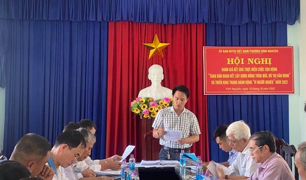 Sáng 18/10/2022, Ủy ban MTTQ Việt Nam phường Vĩnh Nguyên (TP. Nha Trang) tổ chức Hội nghị đánh giá kết quả thực hiện cuộc vận động "Toàn dân đoàn kết xây dựng nông thôn mới, đô thị văn minh" và triển khai tháng hành động "Vì người nghèo" Năm 2022 .