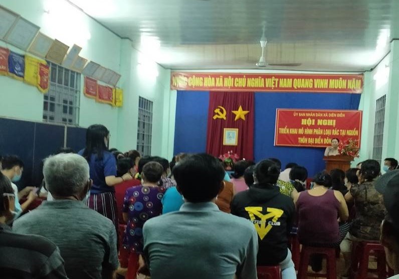 Ngày 27,28,29 và 30/8/2020, Uỷ ban Mặt trận xã Diên Điền, huyện Diên Khánh phối hợp với Uỷ ban nhân dân xã và các Chi hội, đoàn thể ở thôn tổ chức Hội nghị triển khai mô hình phân loại rác thải tại nguồn thí điểm cho 405 hộ dân ở Thôn Đại Điền Đông 3, xã Diên Điền.