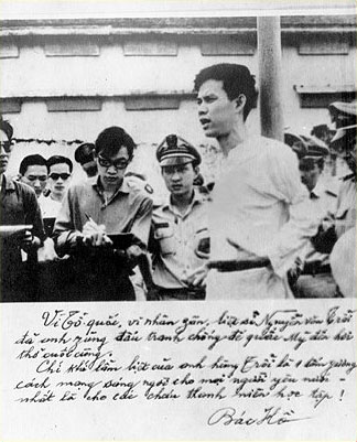 Tôi gửi lời chào thân ái cho các gia đình liệt sĩ đó, và tôi nhận con các liệt sĩ làm con nuôi của tôi".