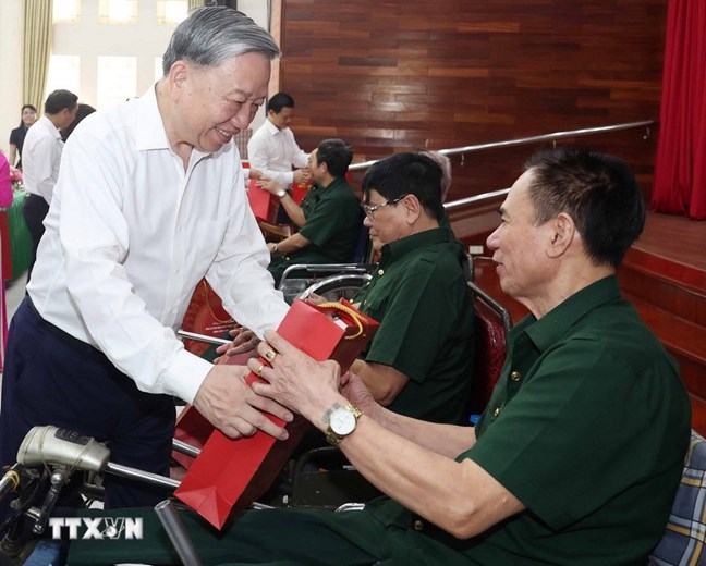 Tổng Bí thư Tô Lâm thăm thương bệnh binh và cán bộ, nhân viên Trung tâm Điều dưỡng thương binh Thuận Thành chiều 15/7/2025