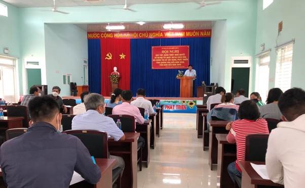 Tại hội nghị, ông Trương Đình Toàn – Bí thư Đảng ủy xã đã báo cáo Nghị quyết của Bộ Chính trị với một số nội dung quan trọng sau: mục tiêu đến năm 2030: là thành phố trực thuộc Trung ương trên cơ sở phát huy cao tiềm năng và lợi thế biển, là đô thị thông minh, bền vững, bản sắc và kết nối quốc tế, là trung tâm dịch vụ, du lịch biển quốc tế, là một cực tăng trưởng, trung tâm khu vực duyên hải Nam Trung Bộ, Tây Nguyên và cả nước về kinh tế biển, công nghiệp công nghệ cao, khoa học và công nghệ,...; tầm nhìn đến năm 2045: là đô thị thông minh, bền vững, bản sắc, ngang tầm khu vực Châu Á, là hình mẫu của sự gắn kết giữa phát triển kinh tế - xã hội với đảm bảo quốc phòng, an ninh, là thành phố đáng sống, nơi nhân dân có mức sống cao, hiền hòa và hạnh phúc,...