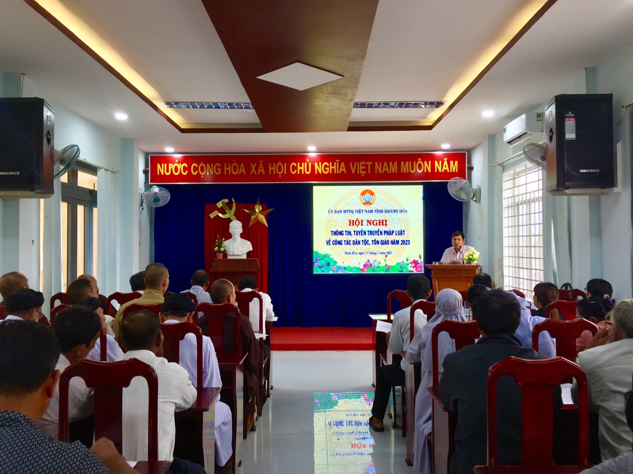Sáng ngày 17-7-2023 Ủy ban MTTQ Việt Nam thị xã đã phối hợp Ban Dân dộc-Tôn giáo Ủy ban MTTQ Việt Nam tỉnh Khánh Hòa tổ chức Hội nghị thông tin, tuyên truyền pháp luật về công tác dân tộc, tôn giáo cho các vị chức sắc, chức việc, người uy tín tiêu biểu trong đồng bào dân tộc thiểu số và lực lượng cốt cán phong trào trên địa bàn thị xã Ninh Hòa.
