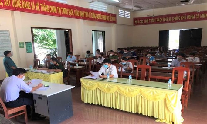 Quang cảnh Hội đồng nghĩa vụ quân sự xã xét duyệt chính trị, chính sách
