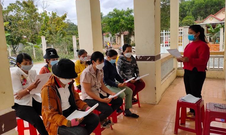 Bà Cao Thị Thủy – Phó Chủ tịch Ủy ban Mặt trận xã Khánh Phú tuyên truyền giảm thiểu tình trạng tảo hôn và hôn nhân cận huyết thống trong vùng đồng bào dân tộc thiểu số năm 2022
