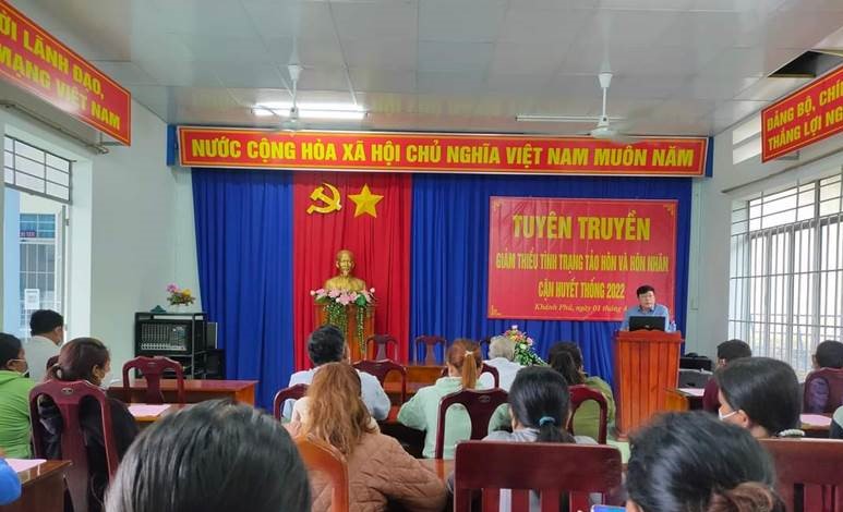 Quang cảnh tuyên truyền giảm thiểu tình trạng tảo hôn và hôn nhân cận huyết thống trong vùng đồng bào dân tộc thiểu số năm 2022 tại xã Khánh Phú