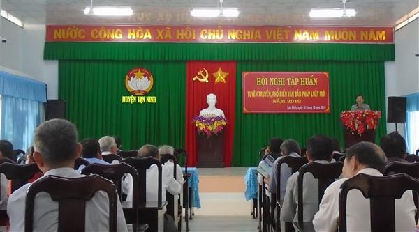 Sáng ngày 16/10/2019, Ủy ban MTTQ Việt Nam tỉnh Khánh Hòa tổ chức hội nghị tập huấn công tác tuyên truyền, phổ biến pháp luật tại huyện Vạn Ninh cho hơn 80 cán bộ Mặt trận ở cơ sở là Thường trực Mặt trận các xã, thị trấn và Ban Công tác Mặt trận trên địa bàn huyện tham dự.