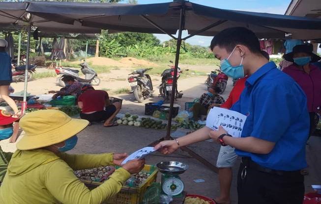 Phát tờ rơi tuyên truyền và khẩu trang tại chợ Diên Lâm