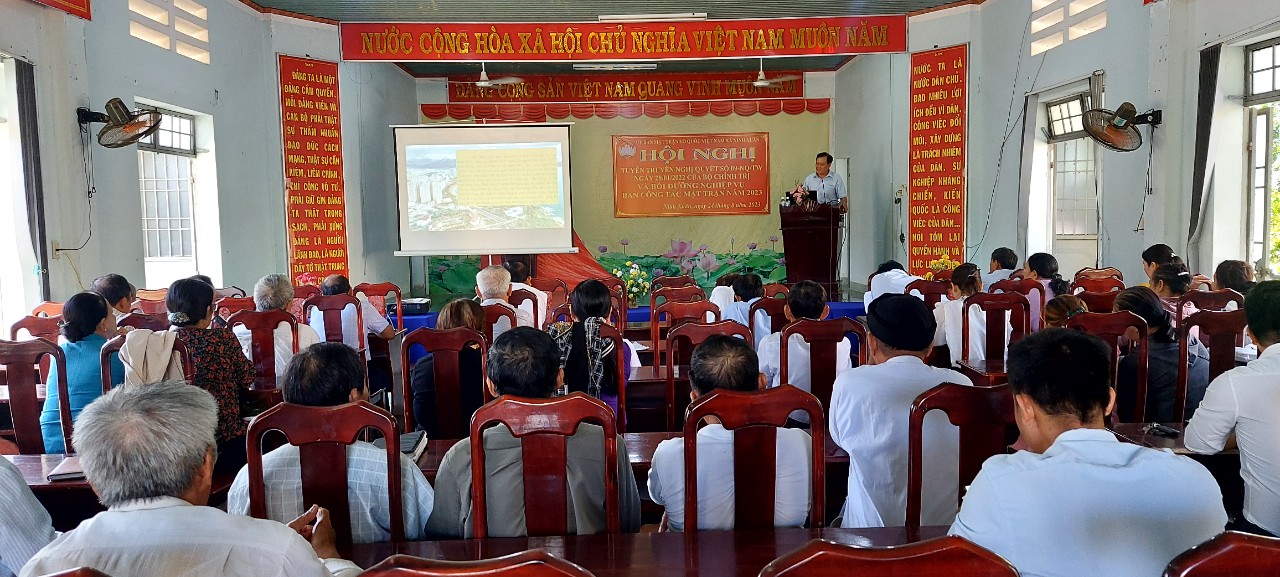 Sáng ngày 24/8/2023, Ban Thường trực Ủy ban MTTQ Việt Nam xã Ninh Xuân tổ chức Hội nghị tuyên truyền Nghị quyết số 09-NQ/TW ngày 28/01/2023 và bồi dưỡng nghiệp vụ Ban công tác Mặt trận năm 2023 cho 36 đồng chí Uỷ viên Uỷ ban MTTQ Việt Nam xã và 36 đồng chí thành viên Ban CTMT tại 6 thôn. Đồng chí Nguyễn Trinh - Phó Bí thư Đảng uỷ - Trưởng Ban Tuyên giáo xã dự và là báo cáo viên tuyên truyền Nghị quyết số 09 tại Hội nghị. Đồng chí Trần Văn Nhược - Chủ tịch Ủy ban MTTQ Việt Nam xã triển khai một số nội dung công tác Mặt trận nhằm bồi dưỡng nghiệp vụ cho các thành viên Ban CTMT tại các khu dân cư trên địa bàn xã Ninh Xuân.