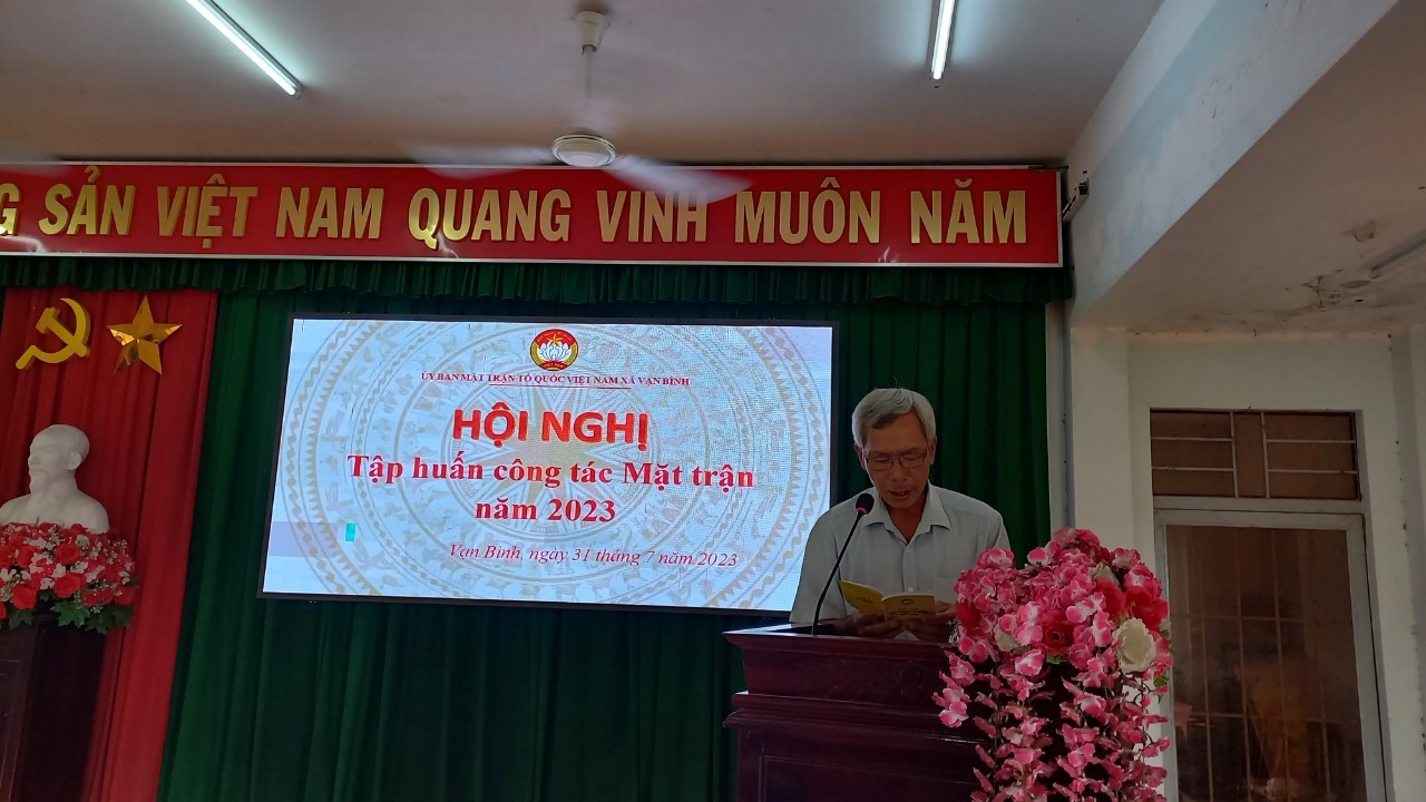 Đến ngày 01/7/2023 Luật thực hiện dân chủ ở cơ sở có hiệu lực thi hành, với nhiệm vụ tuyên truyền chủ trương chính sách của Đảng, pháp luật của nhà nước. Vào ngày 31/7/2023 Ủy ban Mặt trận Tổ quốc Việt Nam xã Vạn Bình tổ chức hội nghị tập huấn công tác Mặt trận năm 2023 để truyền tải về Luật thực hiện dân chủ ở cơ sở. Báo cáo viên buổi tập huấn là đồng chí Nguyễn Kim Chung, Chủ tịch UBMTTQ Việt Nam xã.
